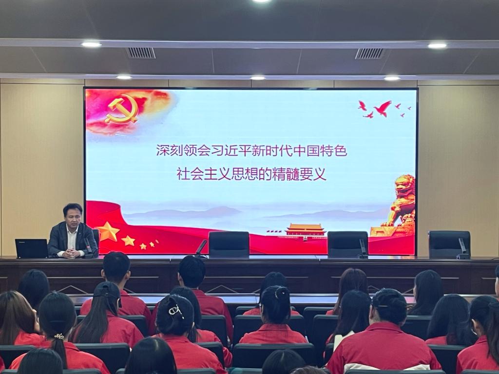 学院党委书记郑海斌以“深刻领会习近平新时代中国特色社会主义思想的精髓要义”为题,从“为什么要学、学什么、怎么做”三个方面作开班第一讲。郑海斌强调,为了提升在党的领导下建设中国特色社会主义的思想自觉和行动自觉,广大学员应当主动自觉学习习近平新时代中国特色社会主义思想。他指出,要从“人民至上、崇高信仰、历史自觉、问题导向、斗争精神、天下情怀”等六个维度深刻领会习近平新时代中国特色社会主义思想的精髓要义;要深刻把握贯穿习近平新时代中国特色社会主义思想的世界观和方法论,将“六个必须坚持”运用到学习和发展的各个方面。他勉励新时代大学生要立志做有理想、敢担当、能吃苦、肯奋斗的新时代好青年,让青春之花绚丽绽放,书写人生璀璨篇章。