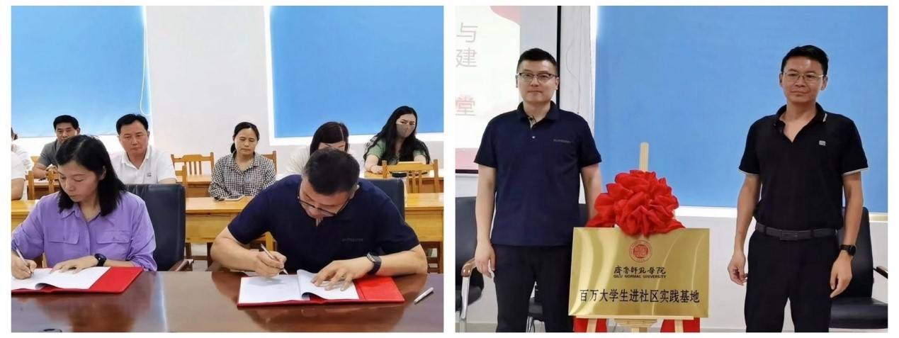 随后,王倩与赵旭签署《大学生社会实践基地协议书》;赵旭、闫守峰共同为齐鲁师范学院“百万大学生进社区实践基地”揭牌。