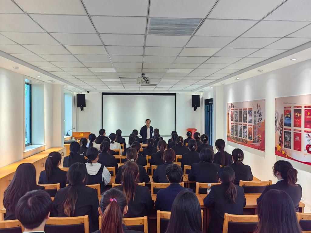 学院党委副书记孙建凯给学生党员们上党课,勉励学生党员传承红色基因,坚定理想信念,提升担当精神,培养争先意识,以更加饱满的精神状态投身未来的学习与工作中。