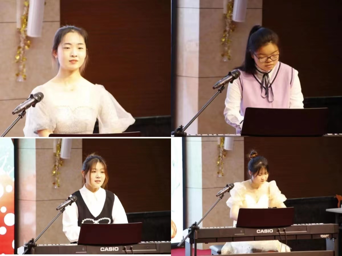 幼儿歌曲弹唱《友谊地久天长》《三只猴子》《小白船》《红星闪闪》《大海啊故乡》等接连上演,指尖抚过琴键,悠悠旋律诉说着脉脉真情。台下观众沉醉着,友情于亲情齐飞,思乡共爱国一色。