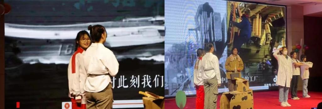 绘本剧《少年英雄王二小》令人印象深刻。生动的绘图背景随剧情发展不断切换,服化道细节到位,参演人员完全带入角色,结尾的舞蹈也锦上添花,时空错位式对话更体现了新中国的成就与进步。