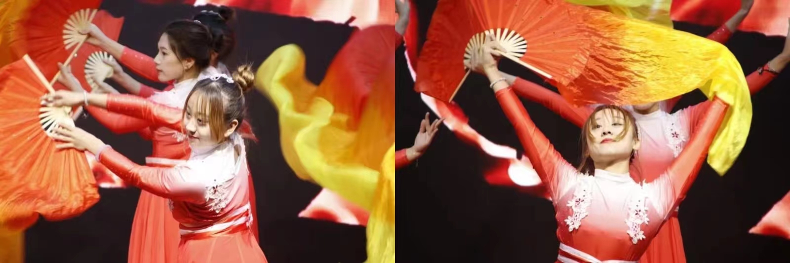 《星星之火》拉开汇演序幕。挥动的衣袖,跃动的身姿,起落腾挪间,尽现飞扬的青春朝气。