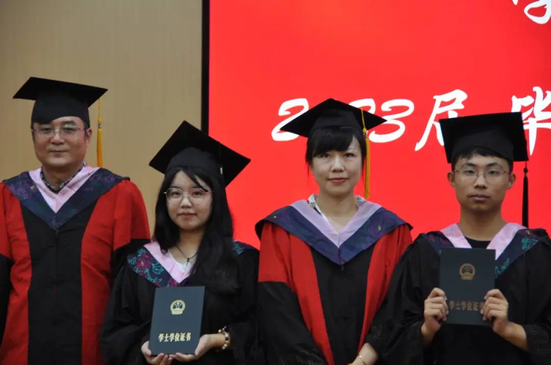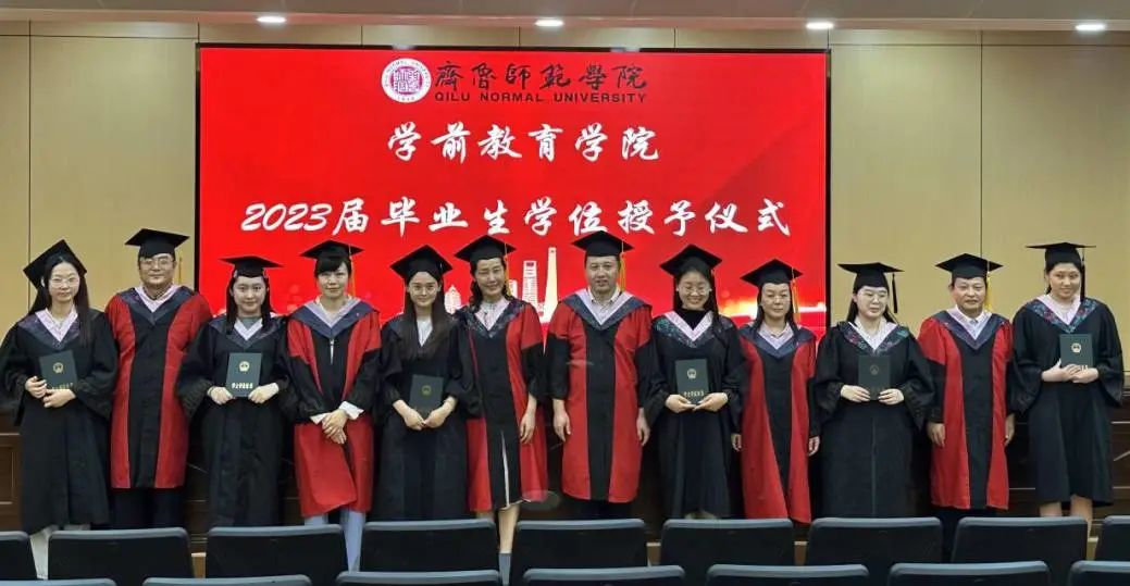 2023年6月19日下午14:30,学前教育学院2023届毕业生学位授予仪式在二教A111隆重举行,院长常爱玲、党委书记郑海斌,孙建凯、杨斌、赵娅迪、张利峰等教师代表为2023届全体毕业生授予学士学位。