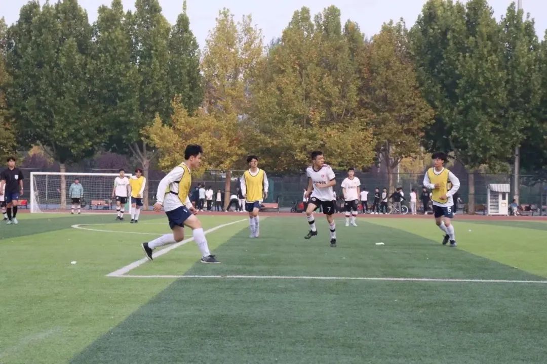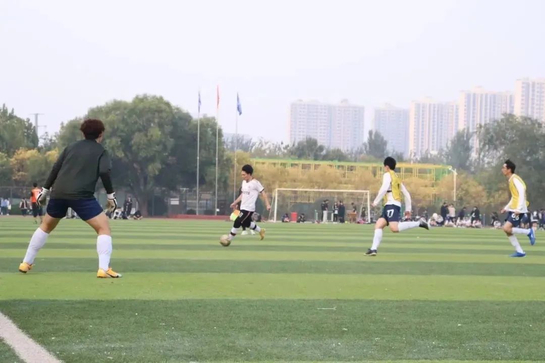 随着裁判员一声令下,比赛一触即发。沐浴着秋日的清风,操场上的白衣少年风旋电掣。一开场,球员退有交叉换位,鱼跃扑球;进有长传突破,沉底传中,我院球员们配合默契,一个眼神一个手势交流,瞬间心领神会。比赛中,我院球员们踢进的每一个球,都体现出我院球员们在平时的刻苦训练中形成的扎实基本功,正所谓“台上一分钟,台下十年功”,我院球员们不负青春,不负韶华,展现了青春的拼搏底色。