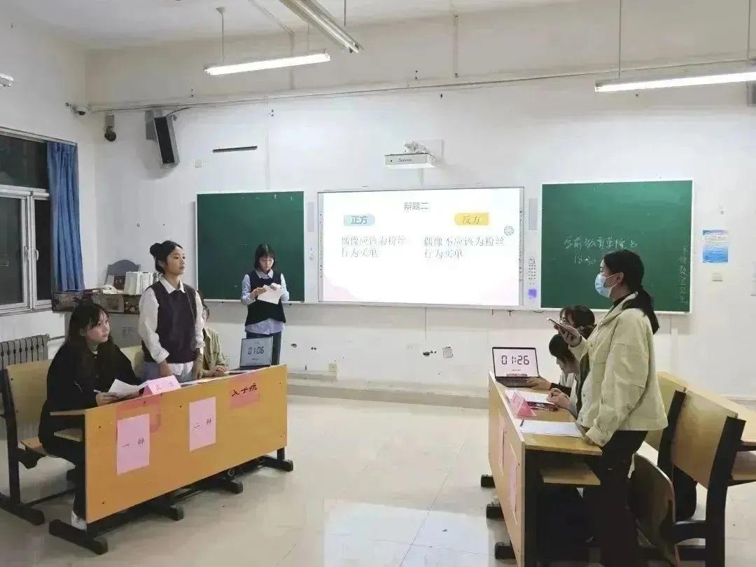 为培养同学们的逻辑思考能力,团队精神以及语言表达能力,由学前教育学院举办了一场主题为“百‘辩’青春,逐梦前行”的辩论赛。辩论赛初赛于10月13日晚19:00在一号教学楼的A215和A217教室进行,出席两场辩论赛的评委由院辩论队成员栾炷熠、李昱奕、赵佳怡和赵淑敏、邵笑颖、刘函翡担任。