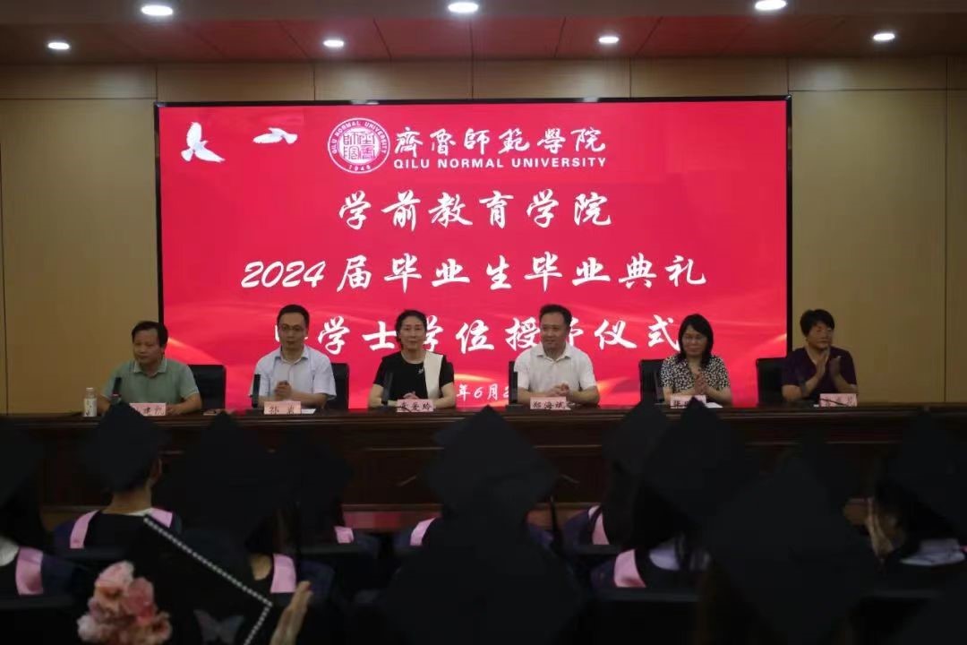 2024年6月23日下午18:00,学前教育学院2024届毕业生毕业典礼暨学士学位授予仪式在第二学术报告厅举行。院长常爱玲,党委书记郑海斌,党委副书记孙建凯,副院长孙岩,张晓梅教授,宫盛花教授,辅导员、2024届本科毕业生参加典礼,典礼由孙建凯主持。
