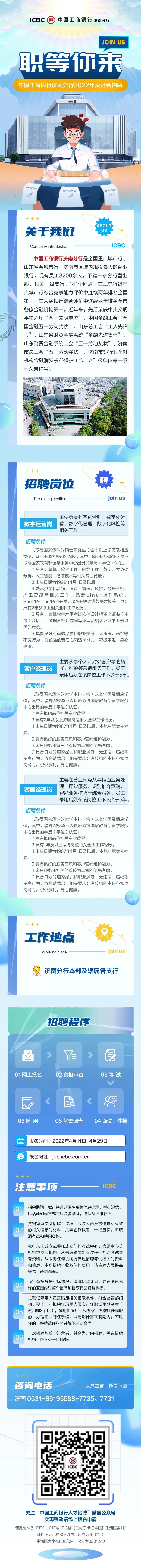 招聘信息:中国工商银行济南分行2022年度社会招聘啦!