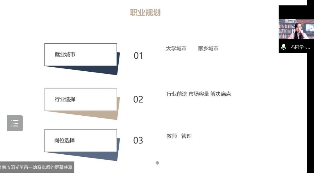 为促进毕业生高质量就业,为毕业生择业提供指导与帮助,2022年4月30日上午10:00,学前教育学院邀请济南市阳光苗苗幼教集团创始人冯芊烨老师及各园园长为毕业生进行线上幼教就业宣讲。我院党委副书记孙建凯主持本次宣讲会,我院团总支书记郭飞,教师刘肖君、臧悦怡参加本次宣讲会,2018级全体学生参加本次宣讲会。