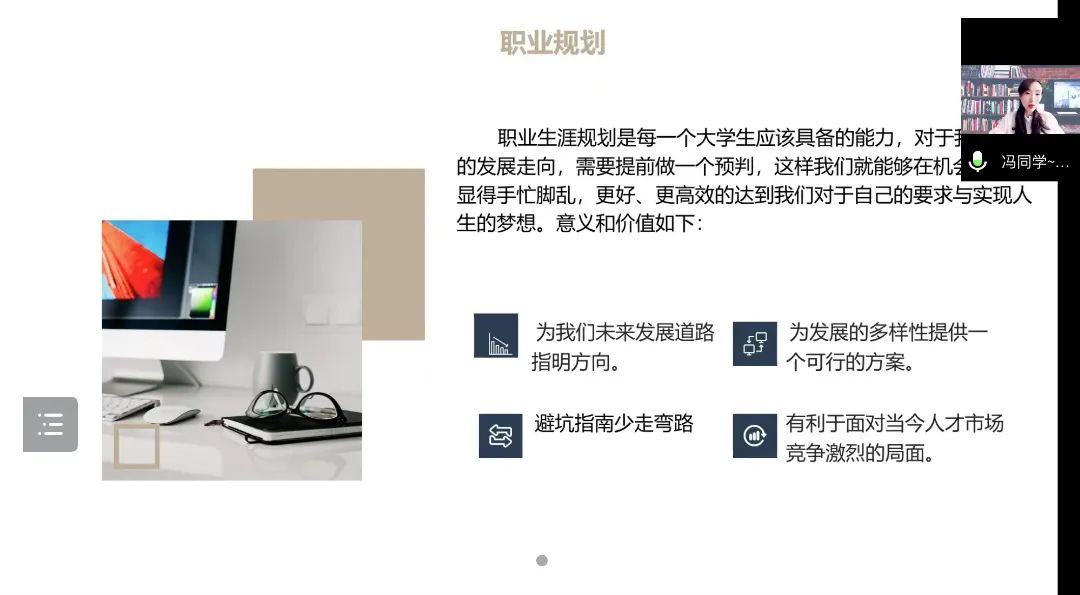 会议伊始,一幼园长寇岚叙老师向毕业生介绍了阳光苗苗幼教集团的发展历程,使毕业生充分了解集团背景。随后,冯芊烨老师从就业城市、行业选择、岗位选择等九个方面为毕业生分析了当今职业发展的趋势,并对毕业生的职业规划做出相关指导。除此之外,冯芊烨老师还邀请到两位优秀的青年教师与毕业生分享就业经历,鼓励毕业生积极把握机会。