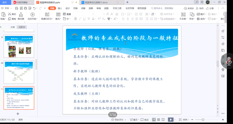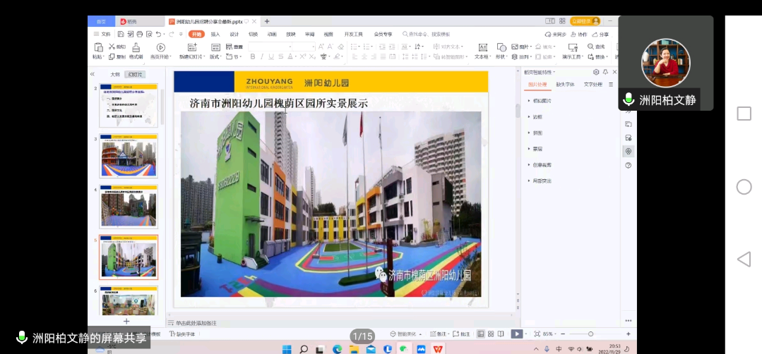 随后,来自济南市洲阳幼儿园的柏文静老师从园所简介,丰富多彩的幼儿园活动,园所文化以及教职工发展空间及福利待遇四个方面展开宣讲。同时,其十分重视对幼师精神面貌的建设及工作生活环境的切实改善,并多次举行教师团建活动。