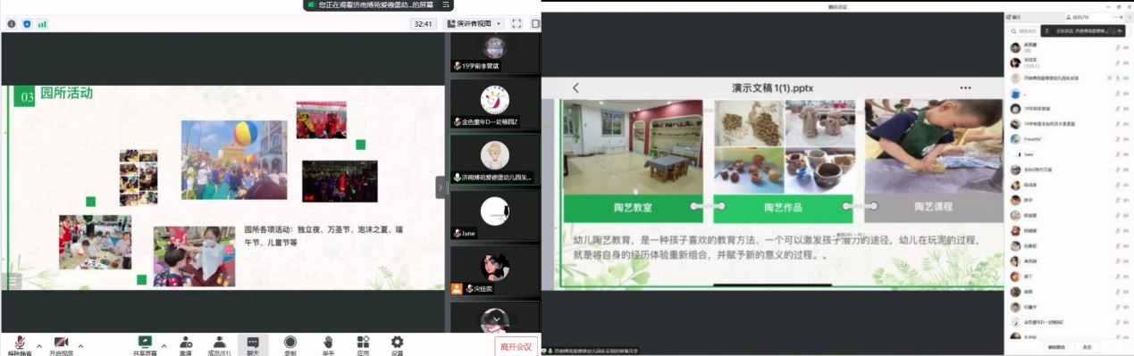 此后,由张彦清老师为金童安年幼儿园进行宣讲,该园是一所具有国际水准的综合性幼儿园,园内自然环境优美,教学设施齐全,随后,张老师为大家介绍了该园教育理念、教育目标、教育体系。在线上提问互动环节,也是事无巨细,积极为同学们答疑解惑。
