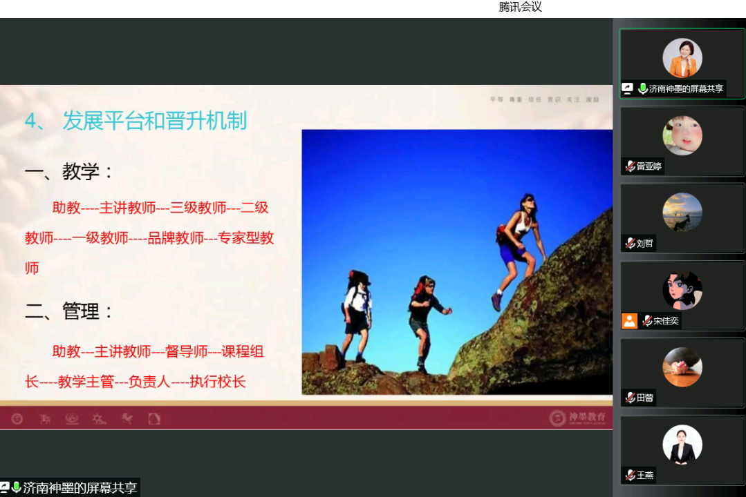 会议过程中,济南市市中神墨培训学校宗老师率先进行宣讲,她介绍到,学校成立至今已24年之久,办学与培训经验丰富,规模庞大。学校重视品德教育与学习力培养,珠心算、口才等七大课程是其特色,并对招聘岗位、工作要求、晋升途径及薪资待遇等作出了具体的介绍。与此同时,学校举办的教师活动亦丰富多彩,是重视品质化的优质平台。