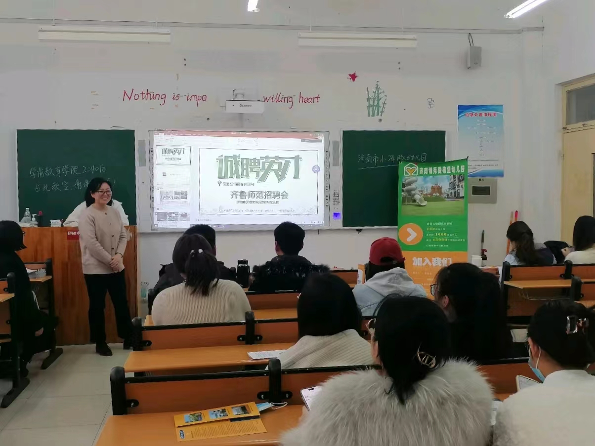 为促进毕业生高质量就业,给毕业学子提供更多的就业选择,学前教育学院于3月15日下午3:00在2号教学楼A115举行了幼儿园专场招聘会。会议由团总支副书记田蕾主持,济南市蒙氏小海豚幼儿园、博苑爱德堡幼儿园进行了宣讲,全体毕业班辅导员、23届毕业生参加。本次招聘会采用了线上、线下相结合的方式,使有意向的毕业生能更好的参与到招聘会中。