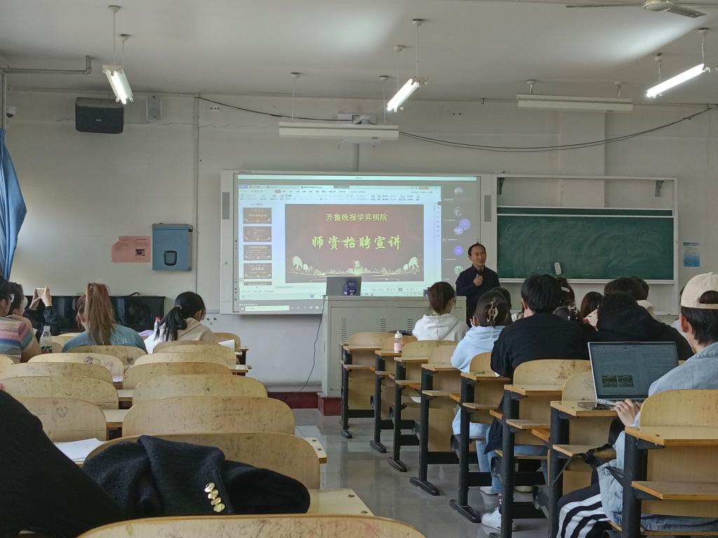 齐鲁晚报学弈棋院董事长赵联山就如今围棋教培行业背景进行介绍,让同学们深入了解围棋行业,并就发展前景、市场定位、团队成绩、师资培养等方面进行了详细的介绍。