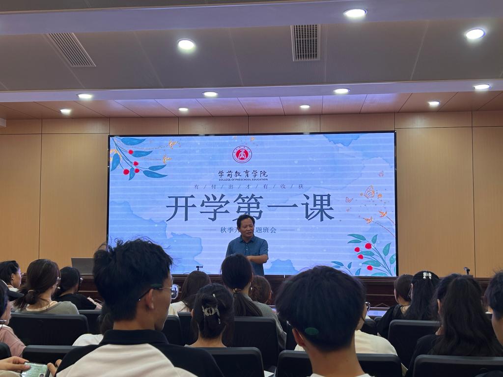 9月2日至7日,学前教育学院组织召开班级“开学第一课”主题班会,深入推动新学期学院学生的思想政治教育和日常服务管理工作走深走实。“开学第一课”围绕落实立德树人根本任务和新学期学生工作重点设计内容,从准确把握学生思想动态,引导学生科学规划新学年学习生活,筑牢校园安全防线和底线等方面,强化辅导员和班主任的教育引导作用,强调日常管理中对学生的服务指导和关心关爱。