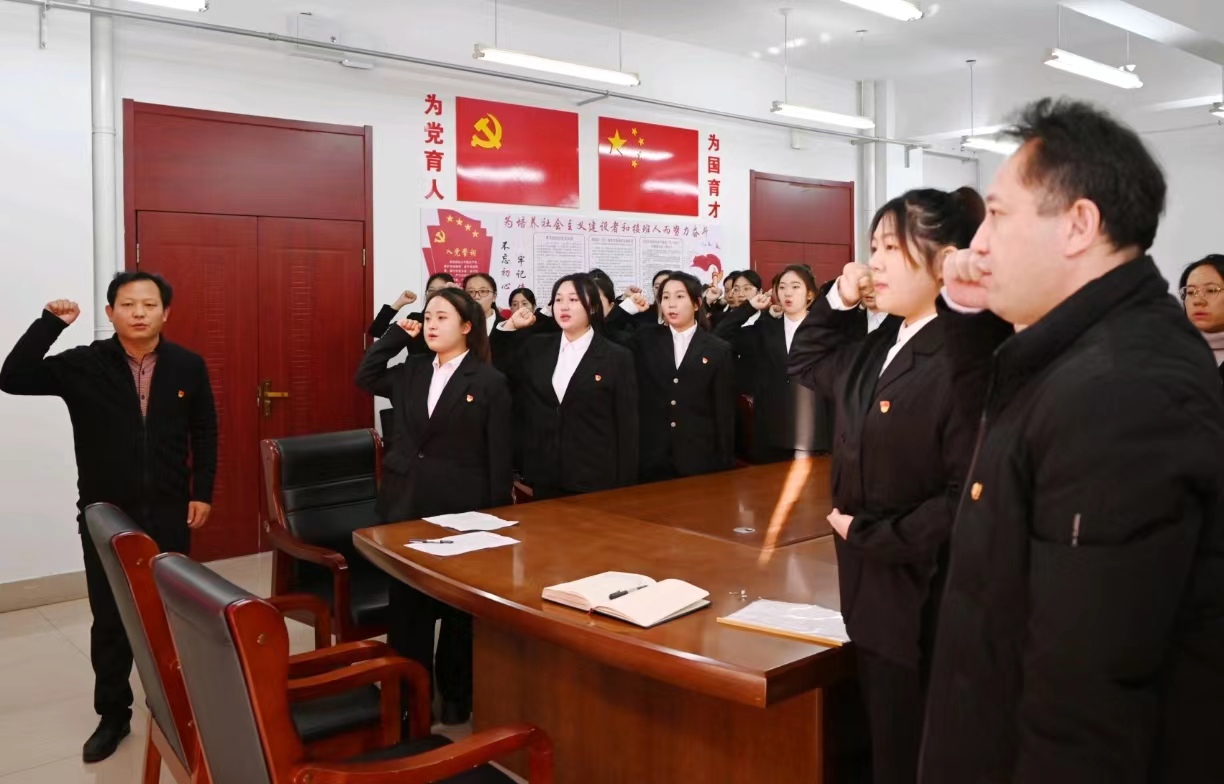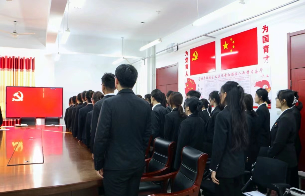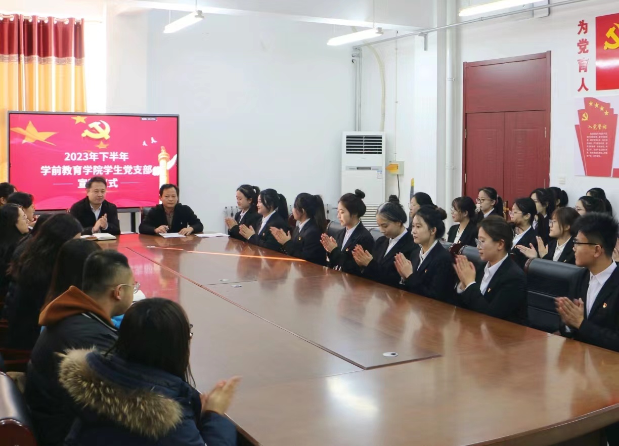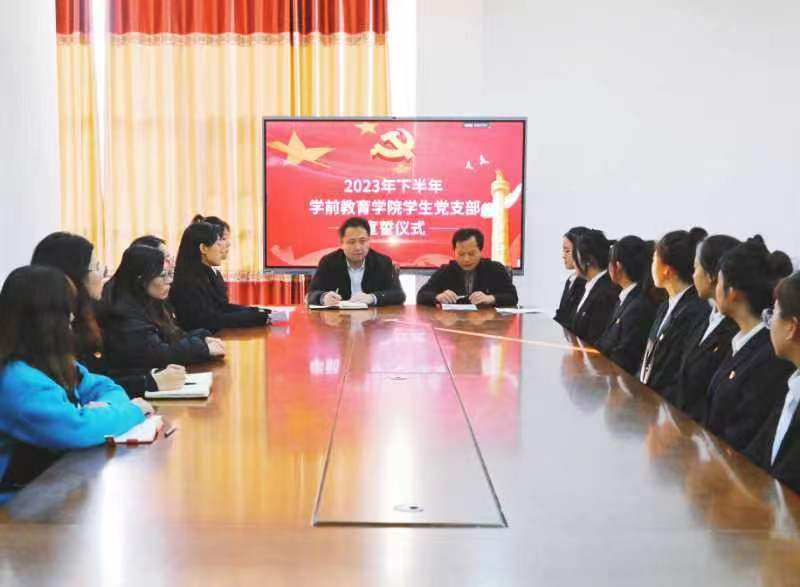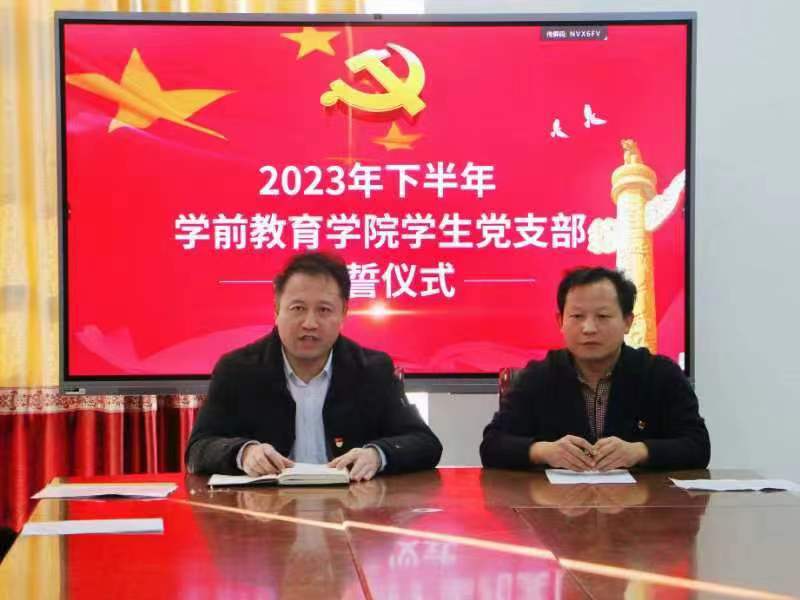 为深入推进学习贯彻习近平新时代中国特色社会主义思想主题教育走深走实,进一步教育引导新接收的预备党员铭记入党初心、坚定理想信念、强化党员意识,12月4日上午9:30,学前教育学院党委于学院会议室为2023年下半年学生党支部新接收的三十五名预备党员举办入党宣誓仪式。学院党委书记郑海斌、党委副书记孙建凯、学生第二党支部书记刘肖君、全体辅导员教师出席仪式,学生党支部党员代表和全体预备党员参与宣誓仪式,本次仪式由孙建凯同志主持。