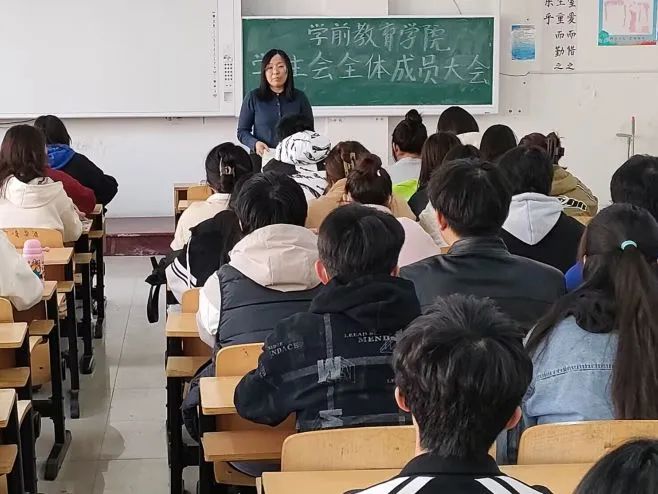 为提高学生干部的政治素养和工作能力,展现学院学生组织风采,2023年3月13日中午,学前教育学院学生会全体成员大会于二教A102顺利召开。参加此次会议的有学前教育学院团总支书记郭飞、辅导员林芳和全体学生会成员。