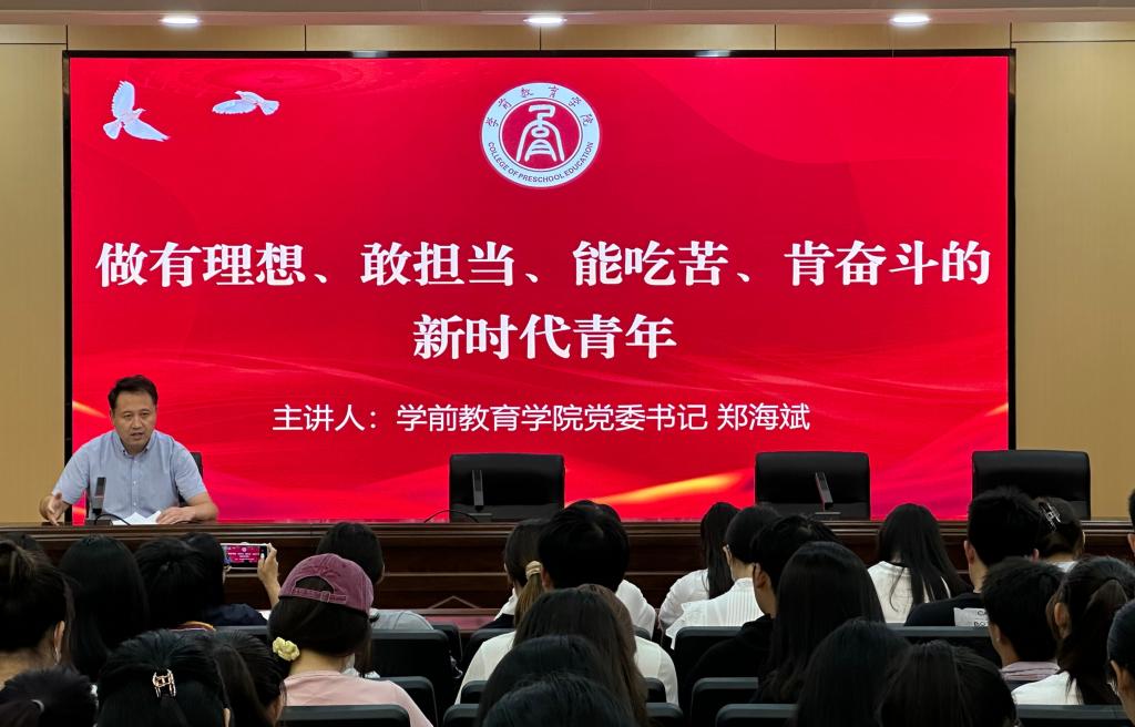 最后,郑海斌书记从“有理想、敢担当、能吃苦、肯奋斗”四个方面指出学生干部要发挥示范引领作用,不负期望和嘱托,并向学生干部提出四点希望和要求:一要坚定理想信念,找准青春灯塔;二要敢于担当作为,发扬斗争精神;三要在苦难中成就辉煌,困难中磨砺青春;四要努力奋斗,用奋斗点亮底色,用奋斗成就自我。鼓励学生干部有“路虽远,行则将至;事虽难,做则必成”的勇毅与信念,以青春之我,建青春之功,展现出青年一代自信自强、刚健有为的精神风貌!