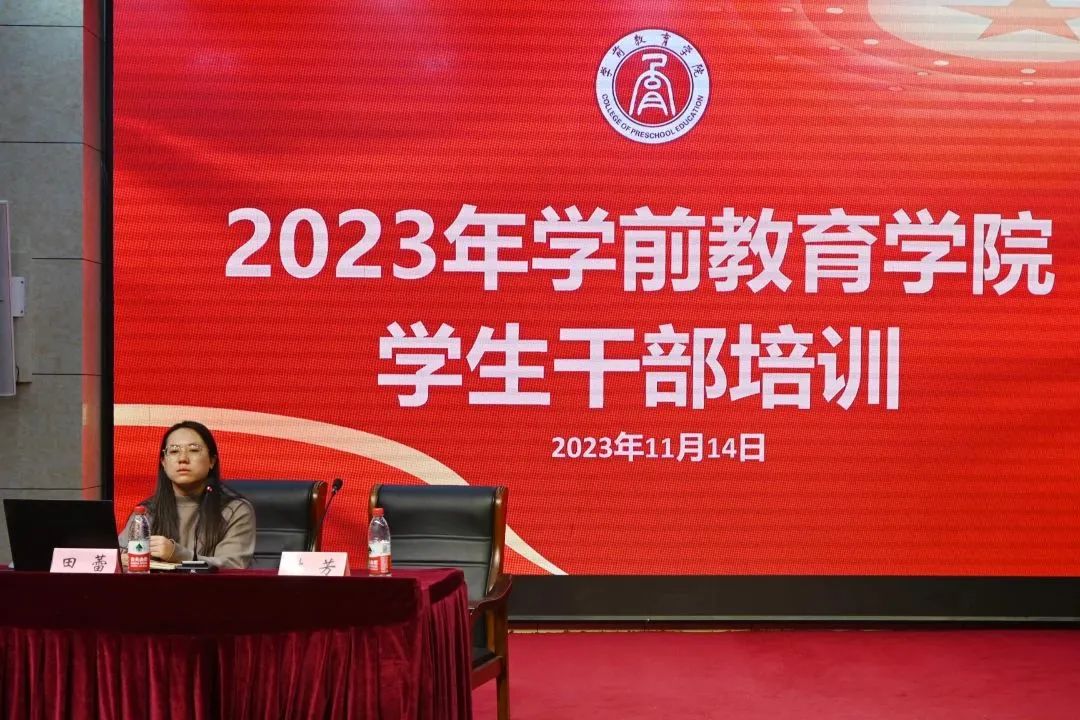 为了提升学生干部综合素质,规范学院学生干部的工作流程,提高学生办事效率,更好地促进日常工作的开展,2023年11月14日18:00,我院于图书馆报告厅召开学前教育学院学生干部培训会。出席本次会议的有学前教育学院团总支副书记田蕾、辅导员林芳,本次会议由田蕾主持。