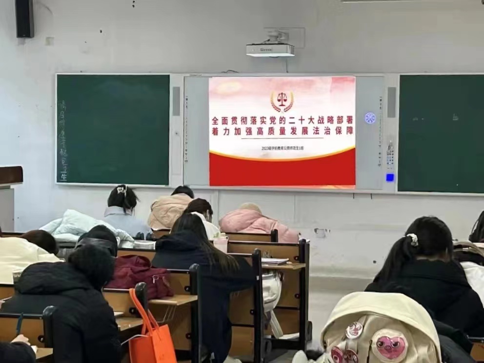 为宣传法治思想,凝聚社会共识,学前教育学院于11月16日下午开展了“全面贯彻落实党的二十大战略部署,着力加强高质量发展法治保障”为主题的团日活动。