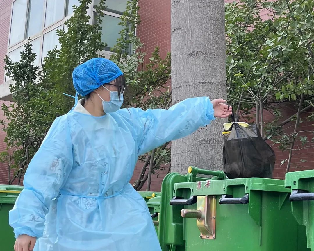 我们主要负责的内容是帮助被隔离同学带饭,帮助她们完成接热水、倒垃圾等日常活动。必要时我们还会根据同学们的需求统一采买物资,尽我们最大的努力解决隔离同学的生活问题。