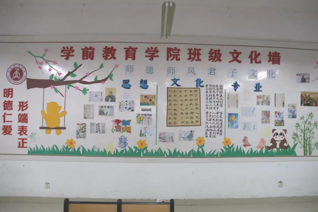 为进一步坚定文化自信自强、加强文化强国建设根基,全面落实学前教育专业人才培养目标,突出学前教育学院教学特色和人才培养特点,体现学院新生班级的精神风貌,我院于2023年10月24日-11月9日开展了2023级班级文化墙建设活动,本次活动2023级学前教育学院全体班主任及学生共同参与。