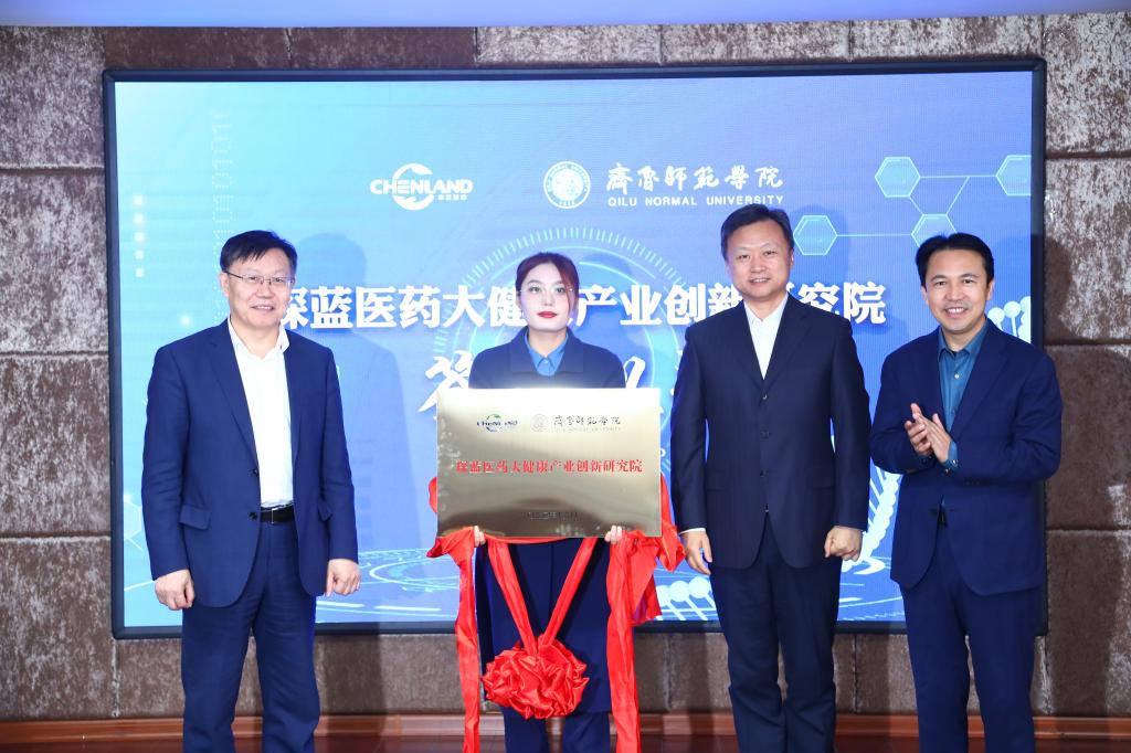为积极推进校地、校企合作,有效促进产教融合、科教融汇,12月3日上午,“琛蓝医药大健康产业创新研究院”签约仪式在青岛琛蓝健康产业园二楼会议室举行。齐鲁师范学院党委书记林松柏、党委副书记赵敏,青岛市崂山区副区长、青岛市高科园工委书记、管委主任吕良宝,琛蓝健康产业集团董事长邹圣灿,及相关部门单位负责人出席签约仪式。签约仪式由琛蓝健康产业集团副总裁孙斌主持。
