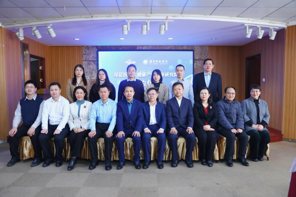 赵敏与邹圣灿签署《琛蓝医药大健康产业创新研究院合作协议》。