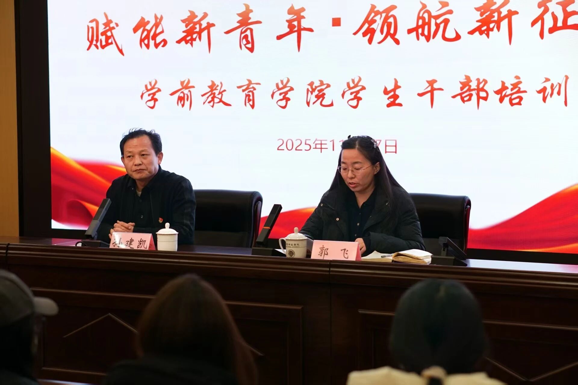 为全面提升学生干部综合素养,锻造一支能力突出、同学信赖的骨干队伍,2025年11月27日,学前教育学院学生干部培训会在第二学术报告厅顺利举行。学院党委副书记孙建凯、团总支书记郭飞、辅导员林芳出席会议,全体学生干部参加。