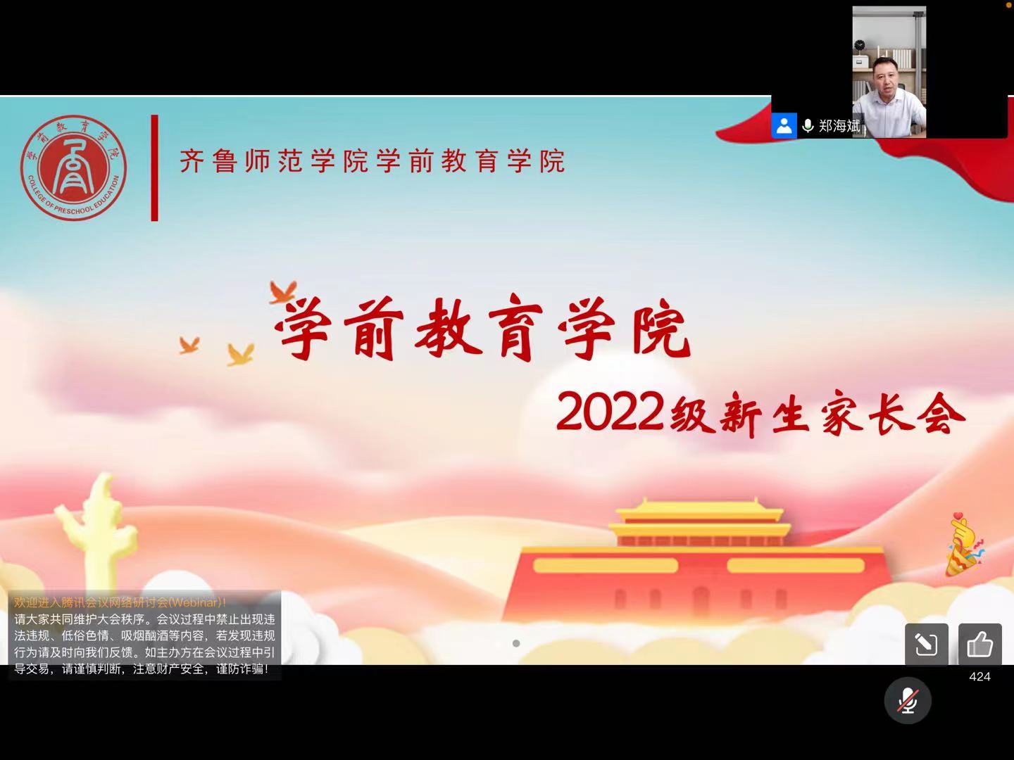 为深入做好2022级新生入学工作,9月11日下午,学前教育学院举行2022级新生家长会。学院党委书记郑海斌、团总支书记郭飞、全体新生辅导员、新生家长参加此次会议。