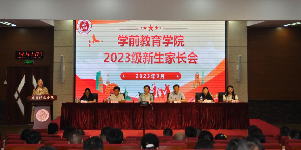 9月9日下午,学前教育学院在图书馆报告厅举办2023级新生家长会。学前教育学院院长常爱玲、党委书记郑海斌,团总支书记郭飞、新生辅导员岳雍君、孙超越以及2023级新生家长参加本次会议,会议由学前教育学院党委副书记孙建凯主持。