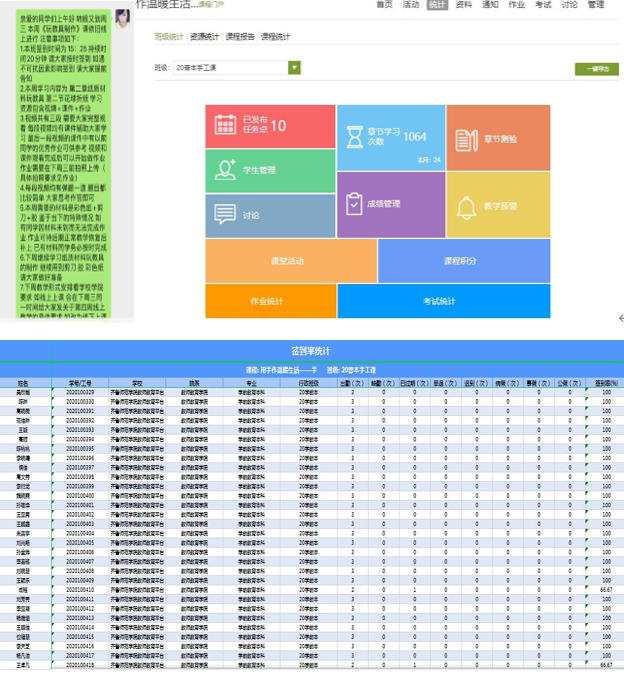 每次开课前,任课教师会提前通知学生准备,提醒学生按时签到,确保学生掌握学习内容,督促学生完成学习任务,按时提交作业。