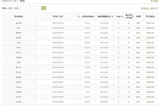 学生线上学习期间,任课教师随时查看线上课程学习数据,对于未完成学习任务的学生及时进行个别沟通,对于学习过程中学生遇到的困难及时反馈,对于学生提出的问题认真解答。