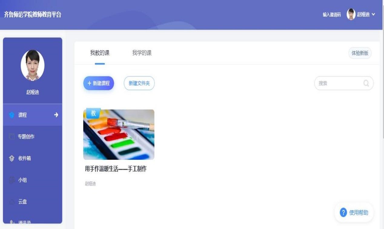 《玩教具制作》课是学前教育专业动手操作性最强的课程之一,结合技能课特点和学生基础水平,课程负责人于2021年8月录制网络在线课程《用手作温暖生活——手工制作》并于2021年9月在超星平台运行。网络在线课程《用手作温暖生活——手工制作》以《玩教具制作》课程目标为出发点,紧扣教学大纲设计教学内容。本课程授课过程中需要进行操作过程展示的内容较多,通过在线视频学习,学生可以反复观看手部操作特写,有助于学生掌握动手操作的步骤和细节。本学期本课程原计划采用线上线下混合式教学,受疫情影响改为线上教学后,任课教师及时进行如下调整。