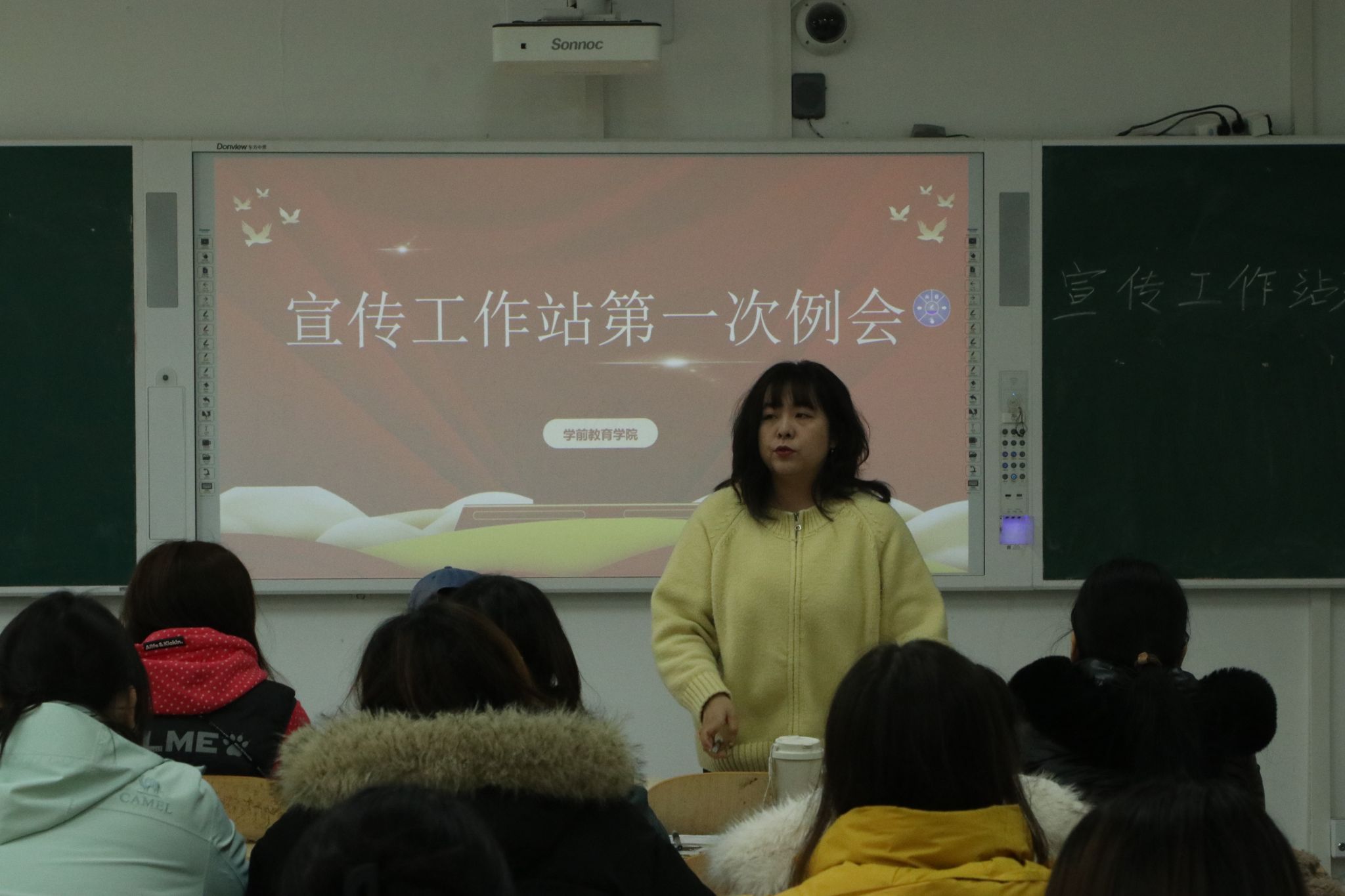 新学期,新征程!为进一步凝聚部门共识,明确工作方向,学前教育学院宣传工作站于2026年3月16日在二教A108召开本学期第一次工作例会。本次会议由运营部部长单琪主持,负责老师李文、宣传工作站全体成员共同参加。