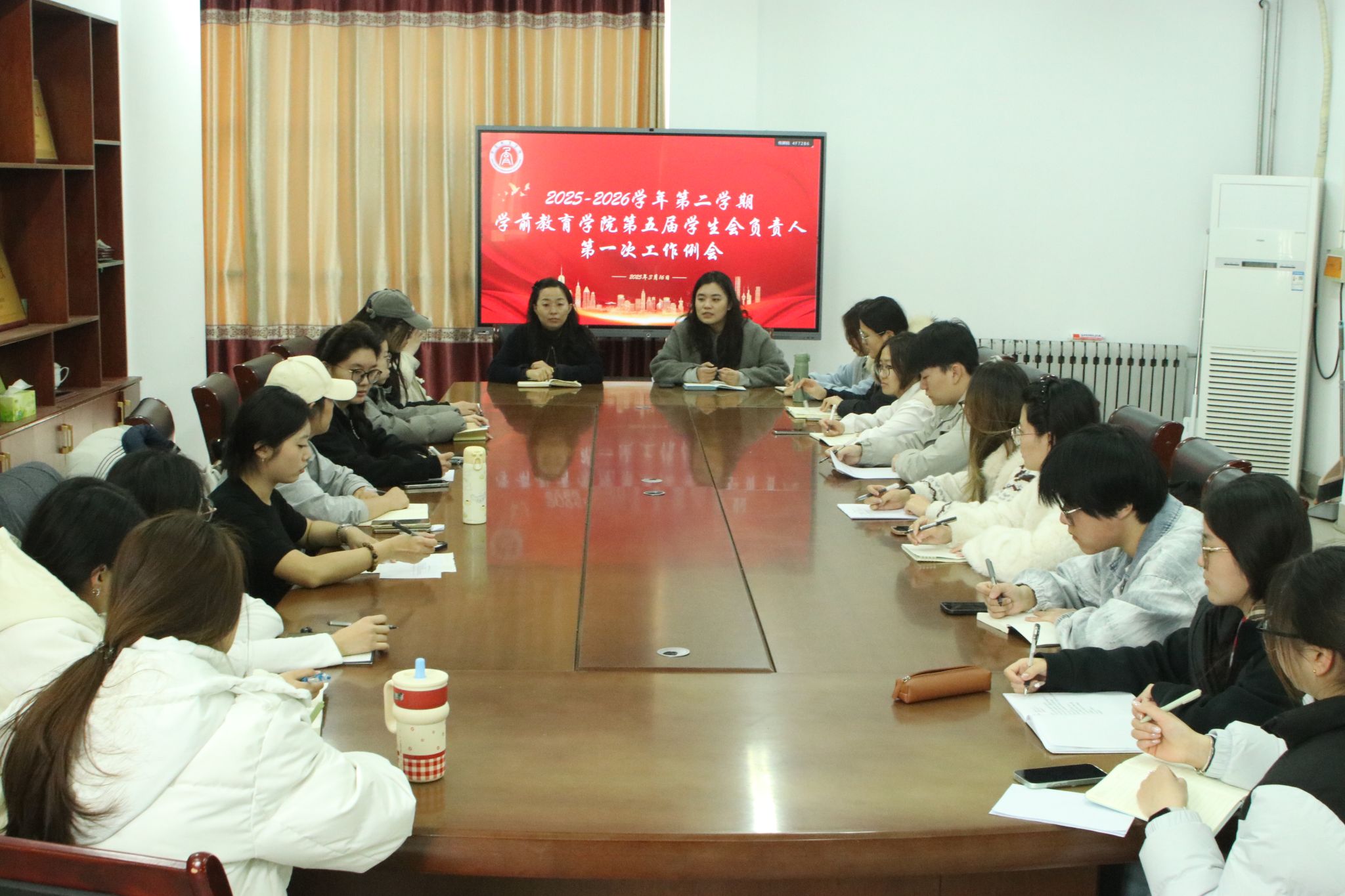 为全面总结上学期工作经验,科学谋划2026年新学期工作,进一步提升学生会服务水平,学前教育学院于3月16日召开新学期学生会负责人第一次工作例会。学院团总支书记郭飞、辅导员林芳及学生会各部门负责人共同参会。