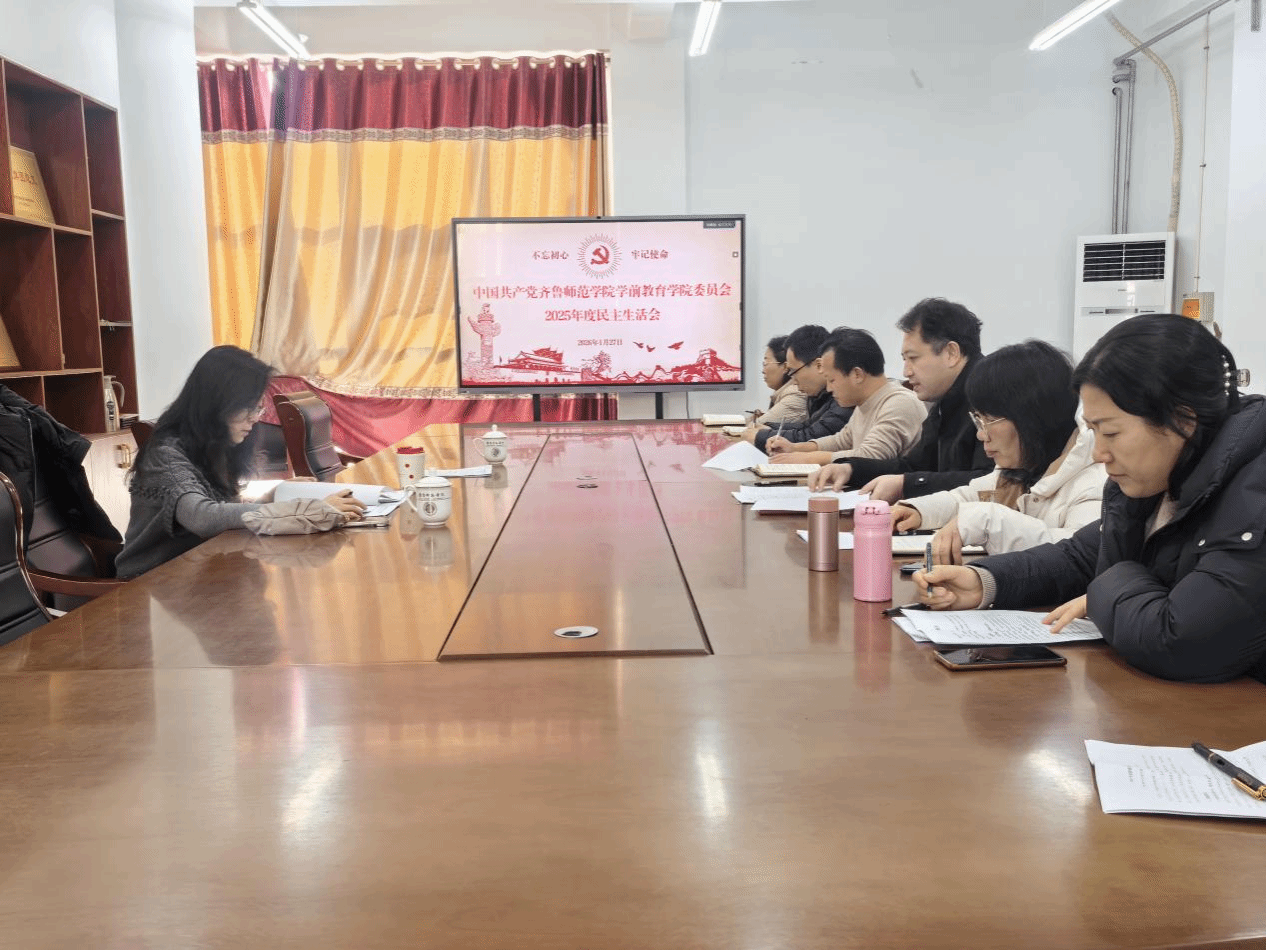 1月27日上午,学前教育学院党委在学院会议室召开2025年度民主生活会。学院党委书记郑海斌主持会议并作总结讲话。学校机关党委书记李岳飞到会指导。学院党委班子成员参加会议,副院长孙岩及两名教师党员代表列席会议。